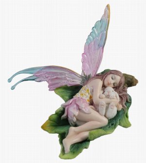 Stellate Fairy Cuddling a Tiny Bunny Fairy Figurine