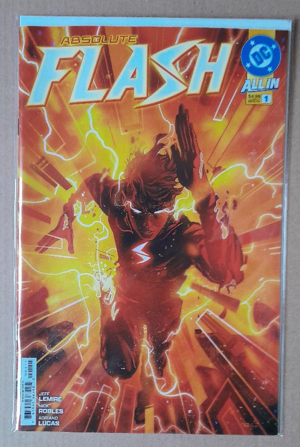 JEFF LEMIRE AND NICK ROBLES SPEED INTO THE ABSOLUTE UNIVERSE! Without the mentor...without the family...without the Speed Force, what's left is the Absolute Scarlet Speedster!