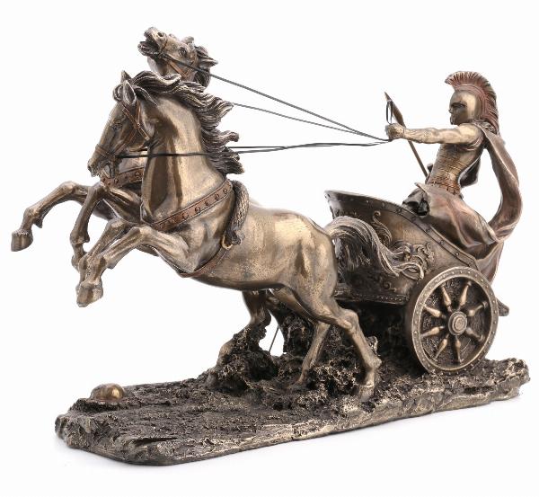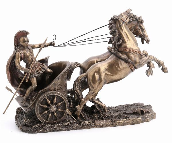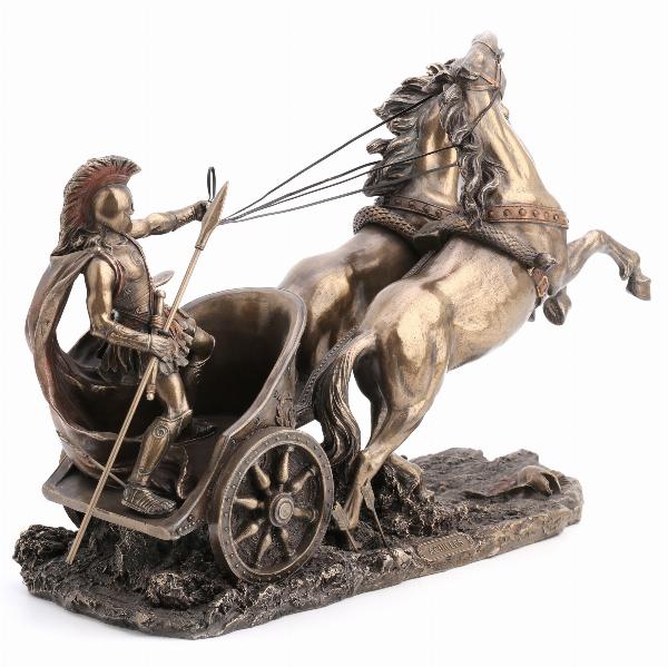 Achilles in 2 Horse Chariot Bronze Statue - Greek Hero (37 Cm)