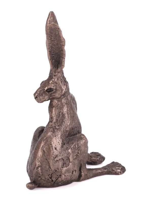 Solid cold cast bronze alert hare sculpture with wonderful detail. Part of this fantastic and mysterious hare collection.
