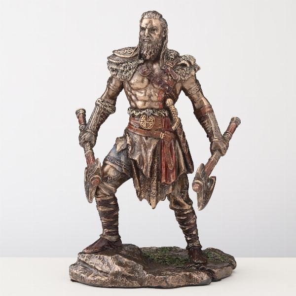 Highly detailed statue of a Anglo-Saxon or Celtic type warrior with twin axes. Over 400 years of relatively local migration from Netherlands, Germany, Scandinavia provide the genetic basis of many English residents today