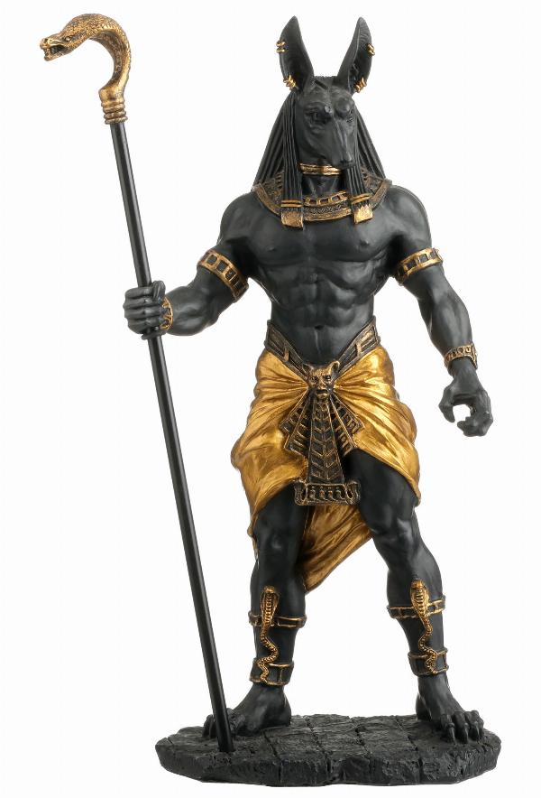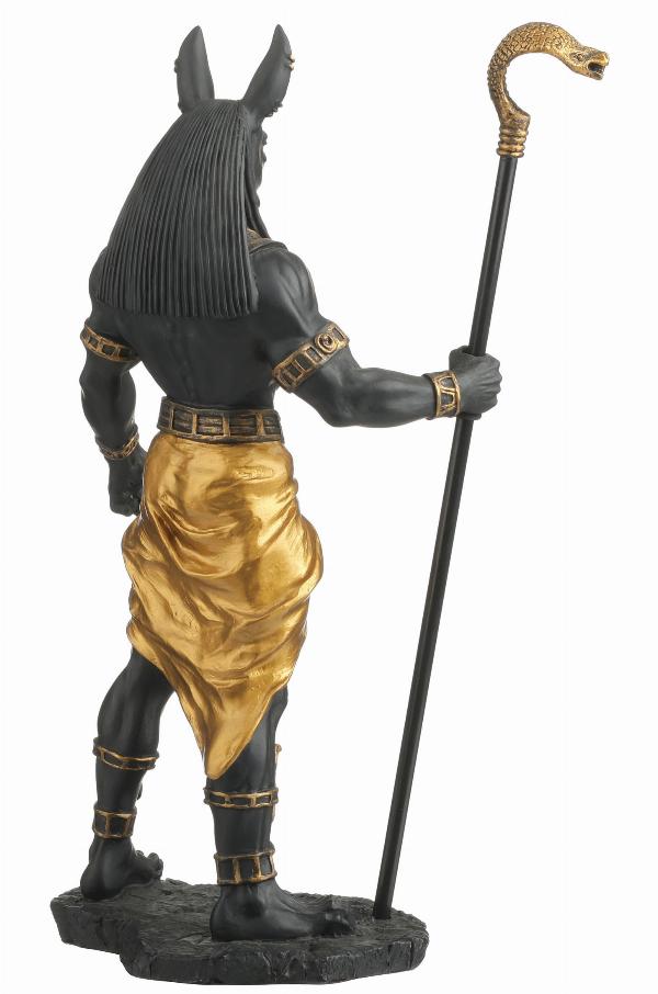 Anubis Holding Cobra Sceptre Standing Bronze Figurine