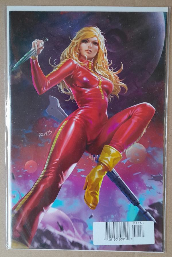 Get Derrick Chew's cover for Barbarella #1 free of trade dress with this Limited, Virgin Edition!