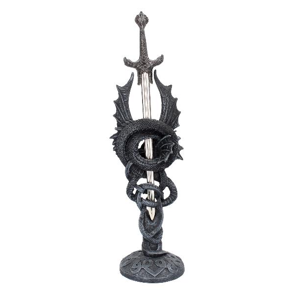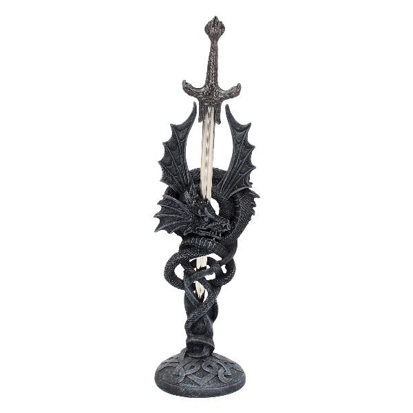 A dragon wrapped around a removable decorative steel dagger letter opener. Remarkable detail results in a stylish and gothic ornament.