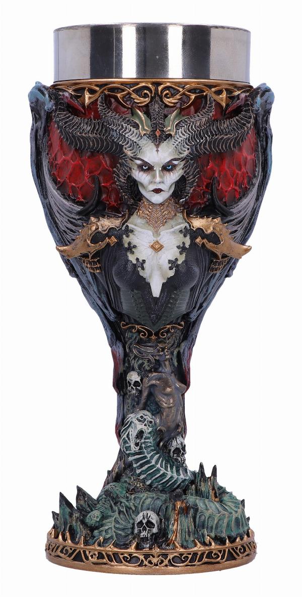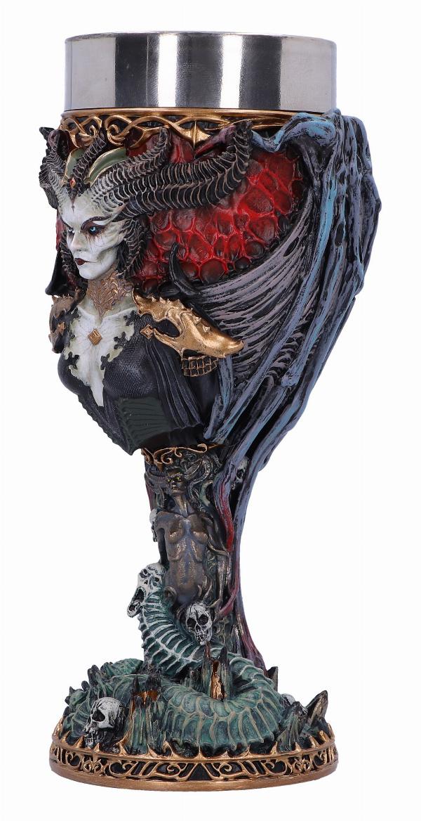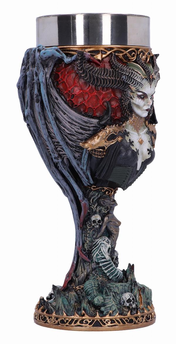 Pledge yourself to darkness with Nemesis Now’s officially licensed Diablo® IV goblet. Featuring Lilith, Daughter of Hatred, who can be seen emerging from the front of the goblet with her wings protruding behind her and wrapping around the back, creating a striking 3D effect. Whilst the stem of the goblet is inspired by Hell’s Gate and the demons which lie within. Cast in the highest quality resin, this Diablo® IV goblet is the perfect addition to any store that specializes in gaming and pop-culture collectibles. Ornamental goblet.
