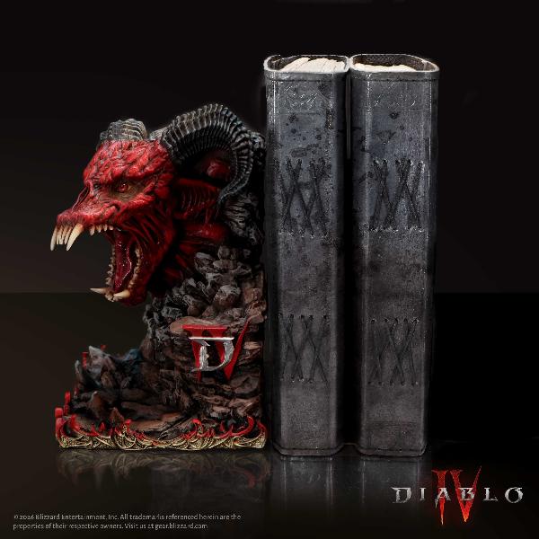- An officially licensed Diablo IV bookend, designed to bring the dark, demonic essence of the game to your shelf or display space.