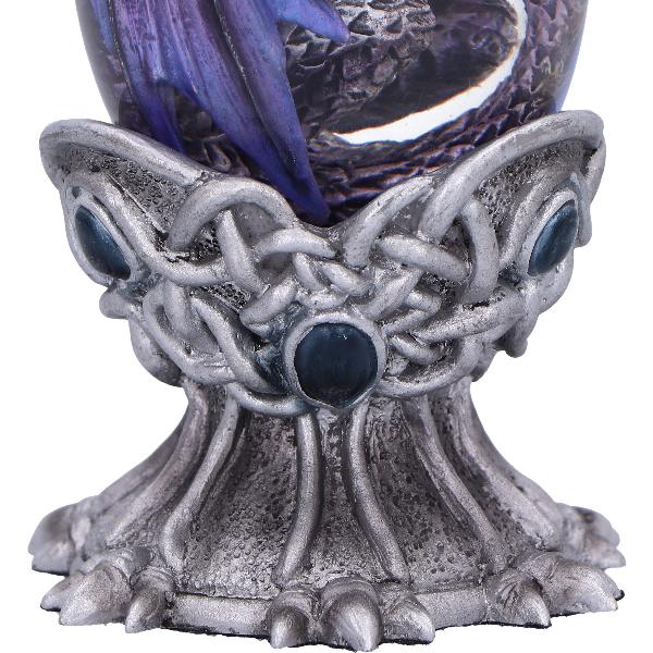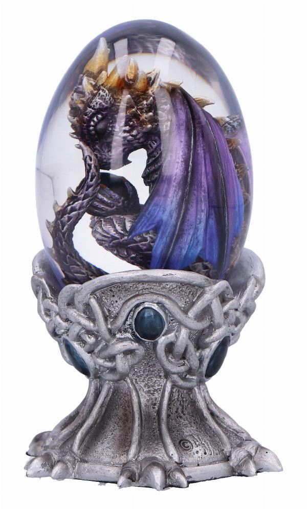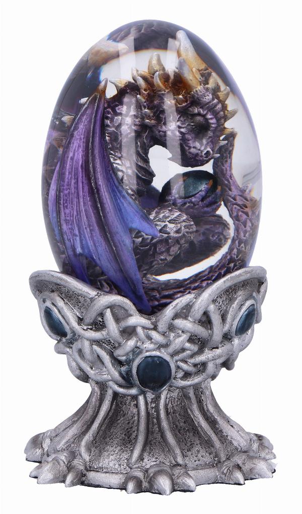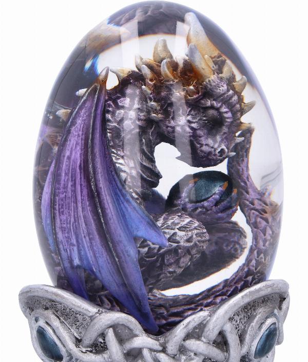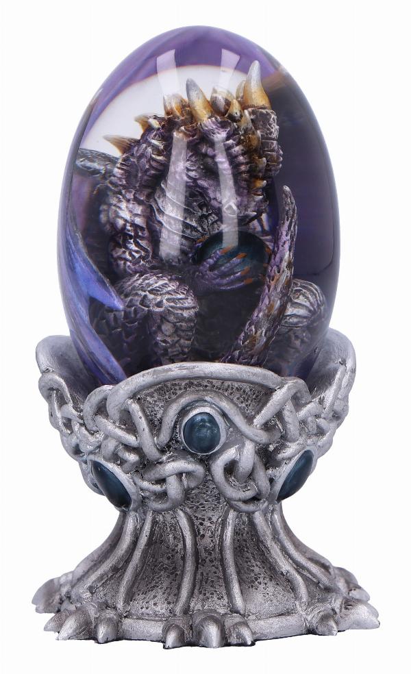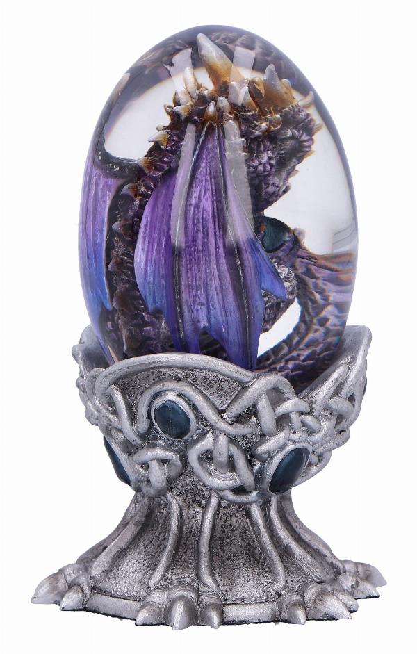 Introducing Elemental Dragonlings - Air, a stunning silver dragonling with exquisite purple wings, delicately housed within a crystal-clear egg. Designed by Nemesis Now, this enchanting piece is meticulously cast in resin and hand-painted with intricate detail. The egg, which can be removed from its ornate silver stand, offers versatile display options, making it a unique centerpiece in any fantasy collection. Arriving in a protective gift box, this magical dragonling is the perfect gift for dragon enthusiasts and fans of mythical legends alike.
