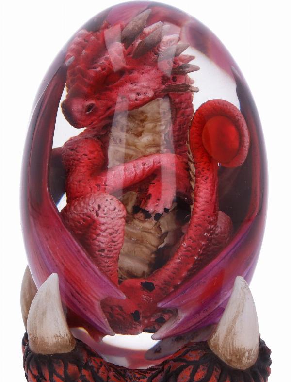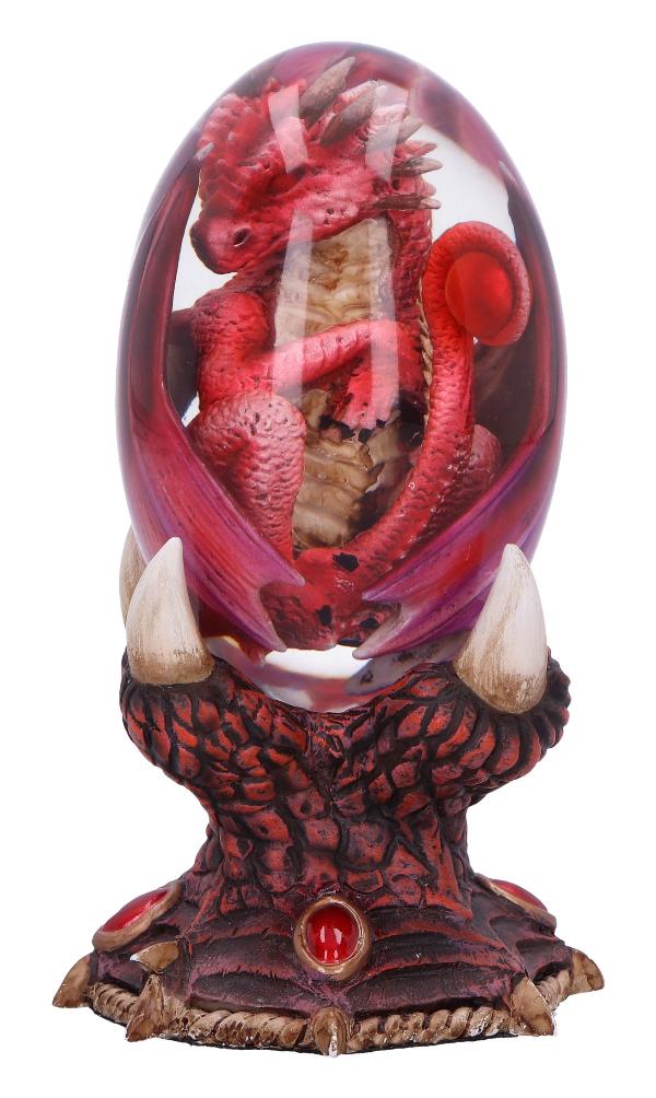 Unleash the fiery spirit of fantasy with Elemental Dragonlings - Fire, a stunning creation by Nemesis Now. This enchanting red fire dragonling is encased within a crystal-clear egg, resting on a beautifully detailed red and bronze stand. Expertly cast in resin and hand-painted with intricate detail, the dragonling is a true masterpiece of craftsmanship. The egg can be removed and displayed separately, offering versatility in showcasing this captivating piece. Arriving in a protective gift box, it makes an ideal present for dragon enthusiasts and fantasy lovers alike, adding a touch of legendary magic to any collection.
