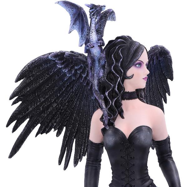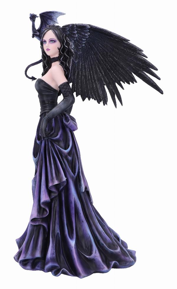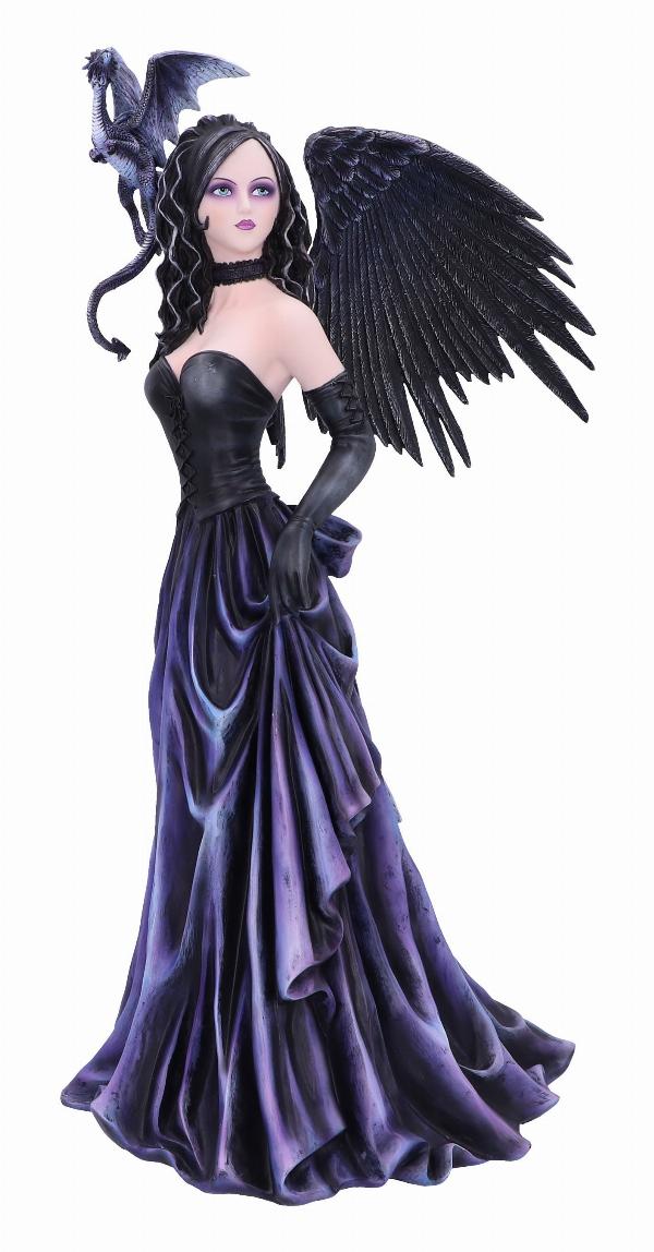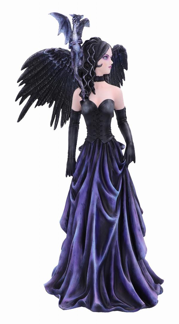 This intimidating mistress of the night stares at you with long black hair with highlights of silver. Her black choker, bodice and matching gloves gradually fade into the long flowing violet dress. A grey Dragonling perches on her shoulder, wings raised in preparation for what's to come. Cast in top-quality resin before being painstakingly hand-painted, this figurine adds an air of alternative enchantment to any home.