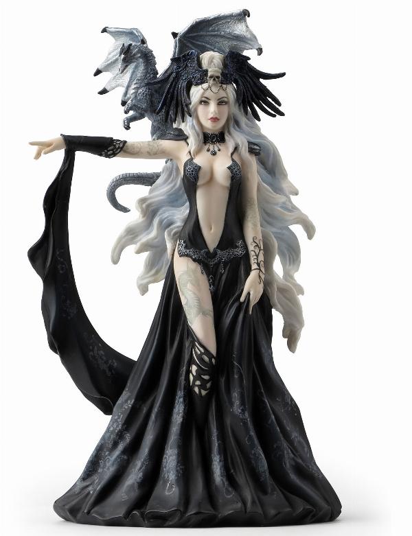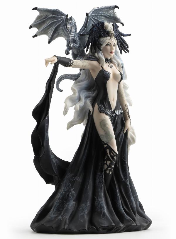 A gothic queen. Baby dragon rests on her shoulder. Stunning detail.